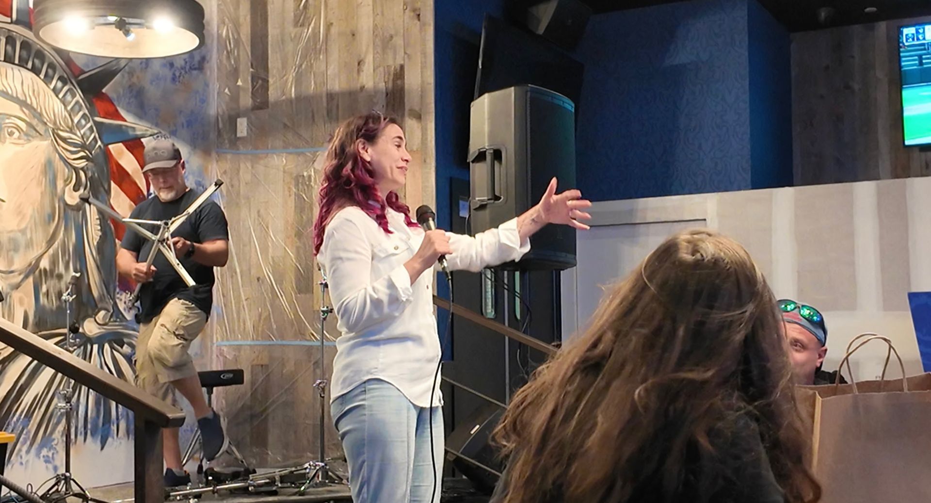 and then I was on stage standing being introduced to the crowd by Brian. My legs were shaking, and I thought they were going to give out on me. My hands were super sweaty, and I was praying I wasn’t as red as a Bing cherry. What transpired once I was handed the mic is a bit of a blur. I remember talking about how I landed in Brian’s class, a bit about my background as Medium in general, and then let spirit come through. I felt nervous and terrified while doing this first group reading (I wanted to do a good job for Brian and Angela’s House) and help the people who had come out to celebrate Rock ‘N Soul Tarot. I had a bit of a shaky start. Messages were coming through but getting the audience members to connect with these messages was a momentary challenge. I don’t normally have this challenge when I read one-on-one, so here I was on stage completely doubting my abilities. It took about five minutes or so for someone to connect with the first message. From that point forward messages of hope and healing flowed through. There were tears of sadness, joy and hope. While there were moments that were awkward and somewhat uncomfortable, the messages continued to flow and be received by the audience. There were quite a few messages that didn’t resonate with people during the time I was on stage, and I was a little disheartened and felt like an imposter. However, once I was off the stage and my energy was in a calmer state many people came over to tell that certain messages did resonate with them, they just hadn’t realized it at the time. This was so validating and appreciated. For a few of these individuals I was able to elaborate on what was coming through even more.